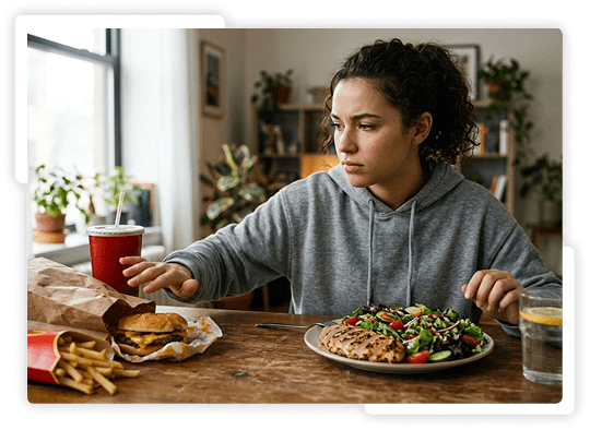 “I ditched the food scale and used the plate templates. Zero overwhelm, steady loss, and my clothes fit better by week 2.”